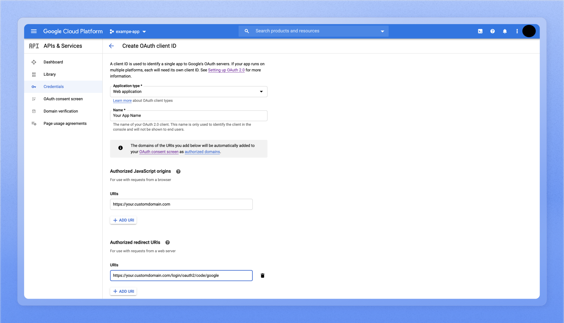 3. Configure the OAuth consent screen with information about the app.